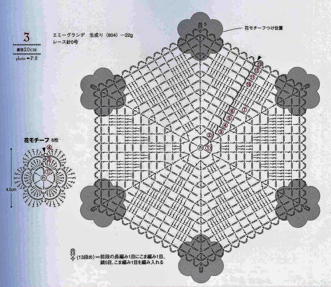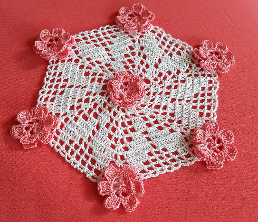 You can do more of these motifs and connect them in a napkin, table cloth, blanket ...