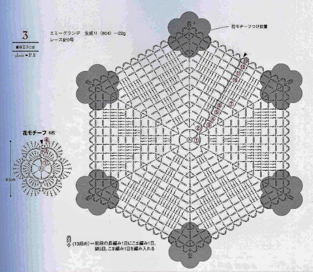 The smaller hexagonal motive for tablecloths, napkins, blankets ...